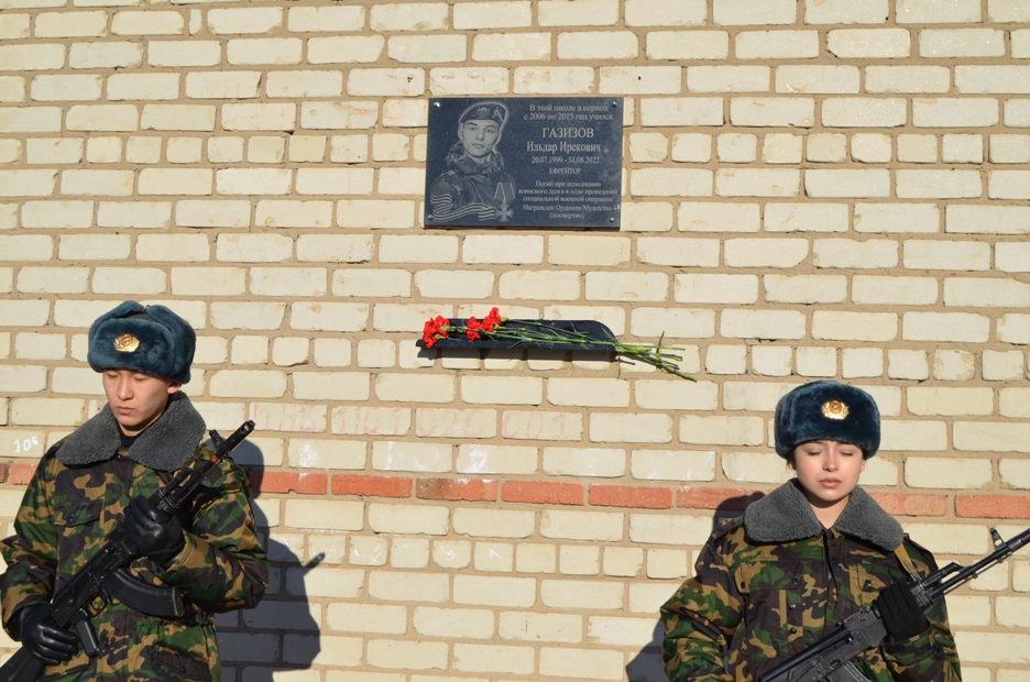 На здании школы № 5 города Соль-Илецка торжественно открыта мемориальная доска памяти нашего земляка, воина Российской армии Ильдара Ирековича Газизова.