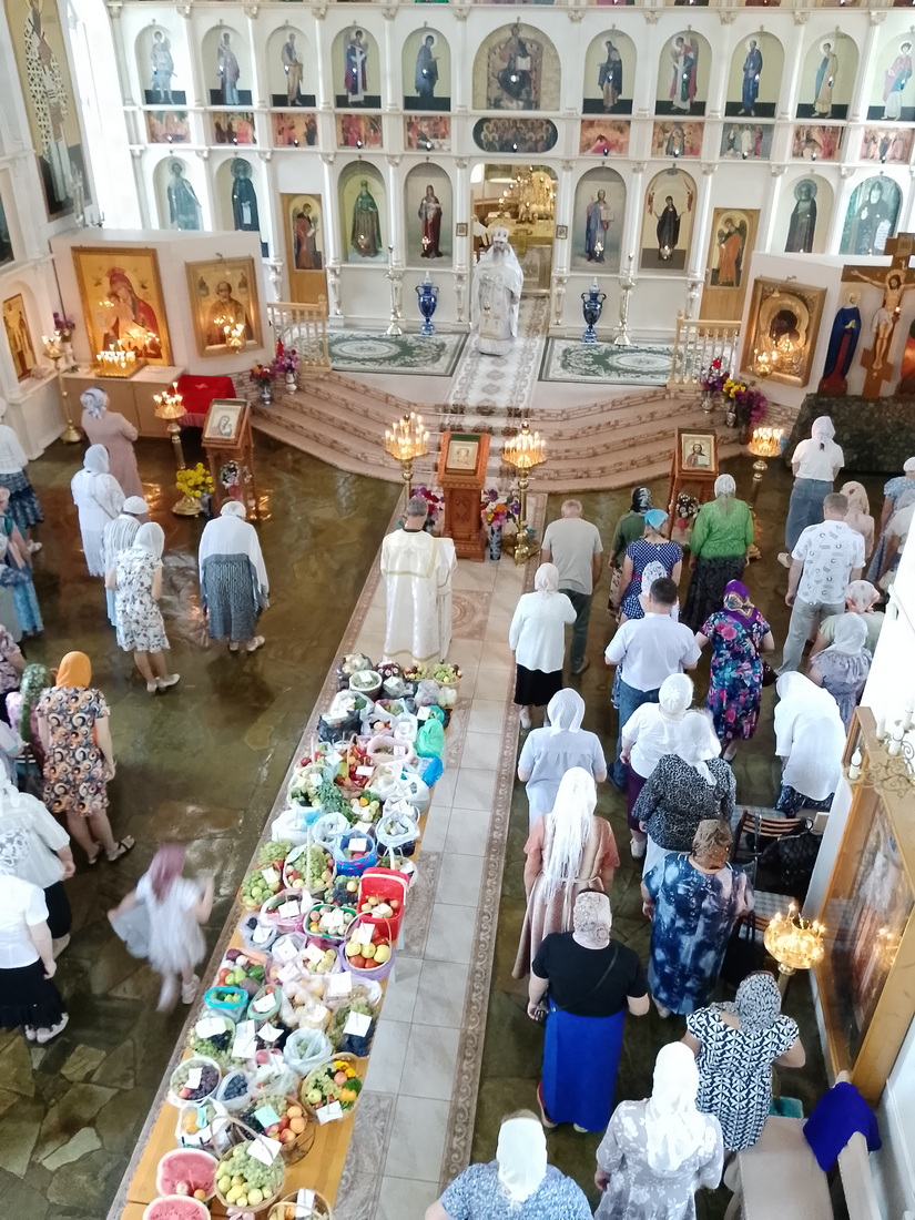 Затем состоялось освящение плодов нового урожая, по традиции принесенных верующими в храм в этот день.