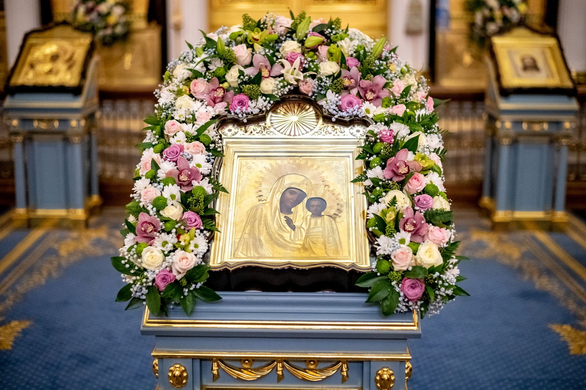 За полиелеем архипастыри и духовенство пропели акафист Пресвятой Богородице перед Её чудотворным образом в правом приделе собора. В завершение богослужения духовенство совершило славление Царице Небесной.