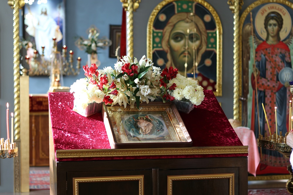 Его Преосвященству сослужили настоятель прихода священник Максим Бражников и клирик храма священник Вячеслав Коротков. Богослужебные песнопения исполнял приходской хор под управлением Виолетты Фатеевой.