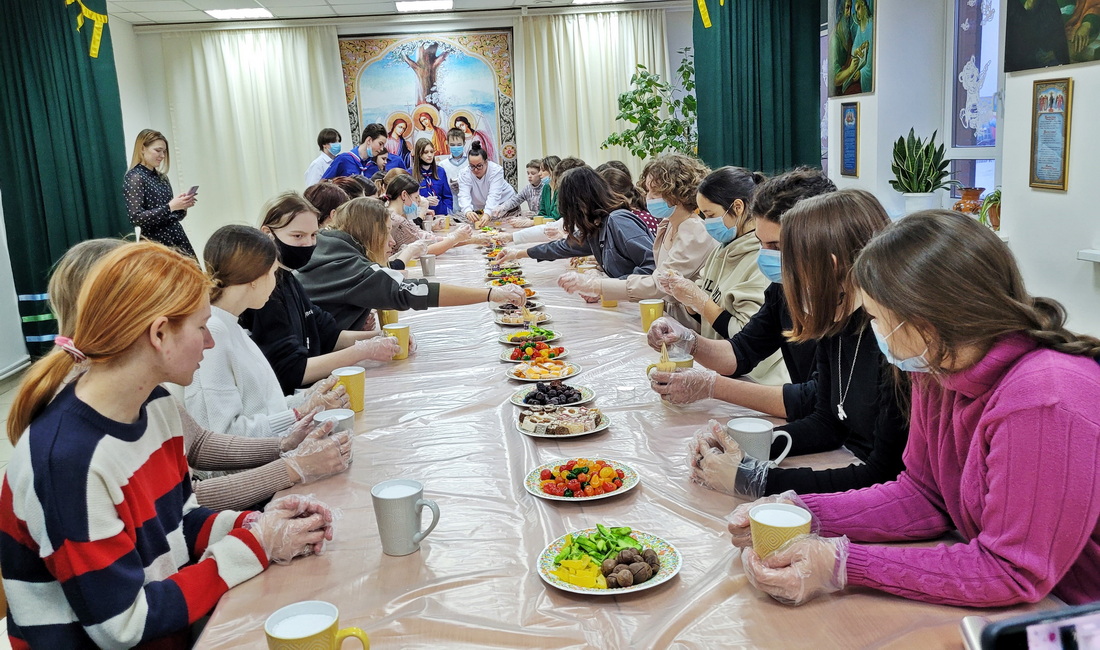 Когда интересная творческая и полезная работа была закончена, все присутствующие спели гимн Братства православных следопытов «Будь готов». Продолжилось общение в приходской трапезной. За чашкой горячего чая православная молодежь пообщалась с настоятелем Пантелеимоновского храма протоиереем Вячеславом Кочкиным.