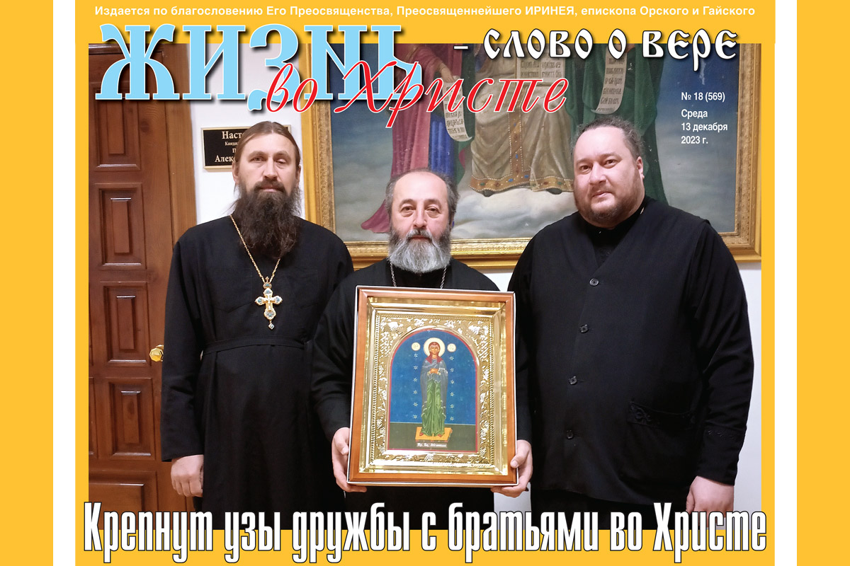 Номер открывает статья «Крепнут узы дружбы с братьями во Христе». В 2022 году по распоряжению Президента Владимира Путина Оренбургская область взяла шефство над Перевальским районом Луганской народной республики. Православная Церковь не осталась в стороне. Орская епархия ежемесячно отправляет гуманитарные грузы на территорию Луганской епархии. Сотрудничество началось ещё в 2014 году, когда епархия приняла деятельное участие в судьбе семьи протоиерея Владимира Креслянского, погибшего в 2014 году в Луганске. А совсем недавно, в конце ноября, по приглашению епископа Орского и Гайского Иринея священнослужители из Перевальского района Луганской области посетили Орскую епархию. О том, как прошел их визит – статья на 1 странице, окончание статьи – на 5 странице.