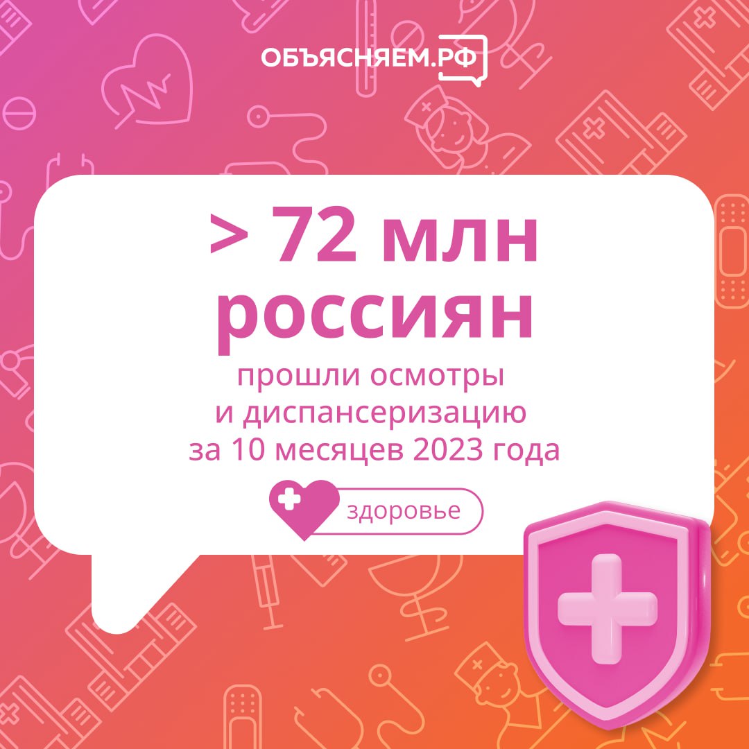 Более 72 млн россиян прошли диспансеризацию и профосмотры за 10 месяцев 2023 года