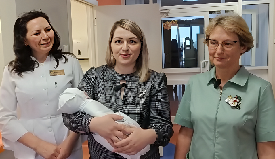С рождением долгожданной дочери семью поздравили заведующая отделением новорожденных Людмила Могильницкая и врач акушер-гинеколог Наталья Воронцова.