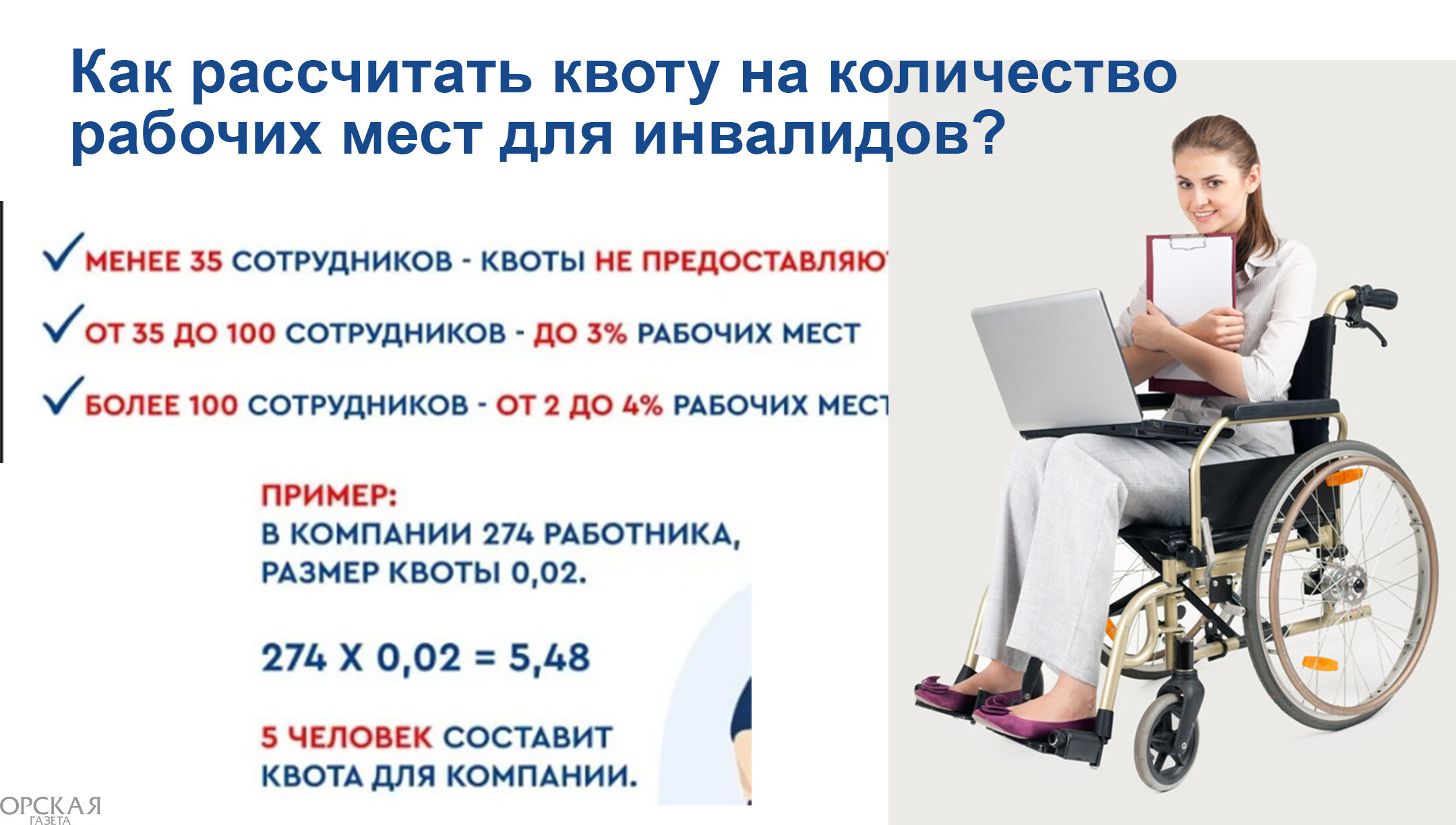 До 1 февраля работодателям Оренбуржья необходимо рассчитать квоту для приема на работу инвалидов на текущий год.