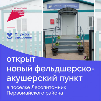 Национальный проект «Здравоохранение»: в поселке Лесопитомник Первомайского района открыт новый фельдшерско-акушерский пункт