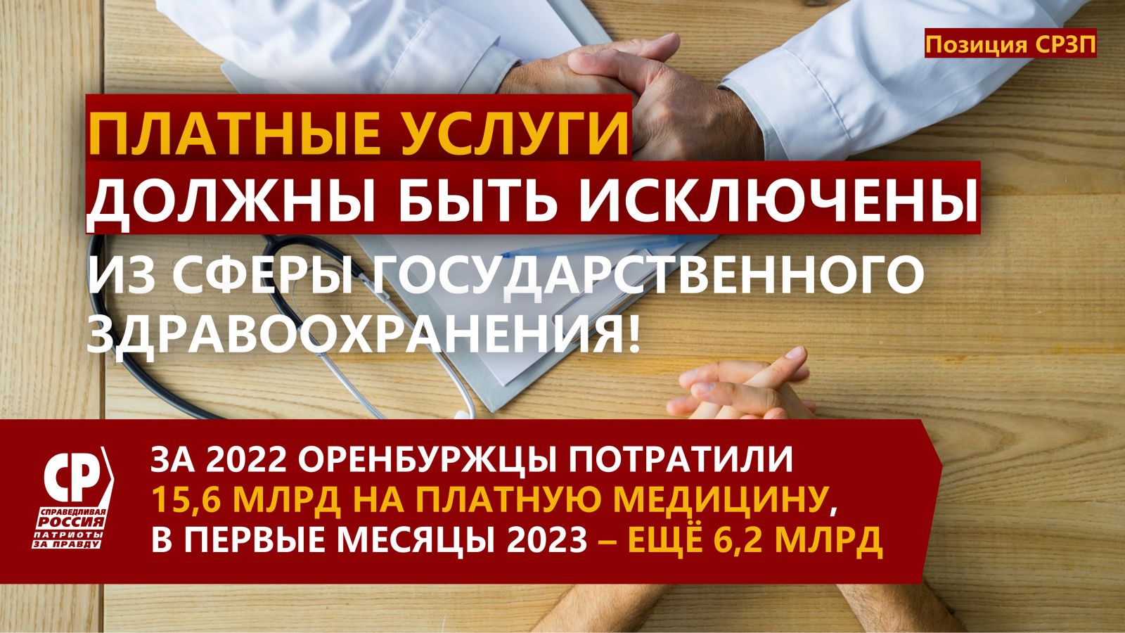 📍Платные услуги должны быть исключены из сферы государственного здравоохранения, для этого есть частные медучреждения. Это программная позиция нашей партии.