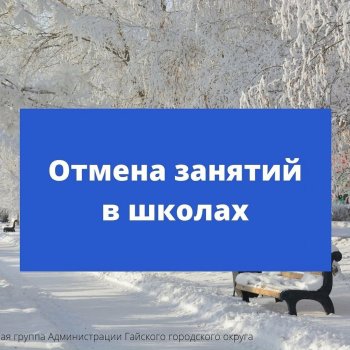 Внимание! В связи с низкой температурой воздуха 11 января отменяются занятия в школах г. Гая с 1 по 8 классы, в сельских школах Гайского городского округа с 1 по 11 классы.