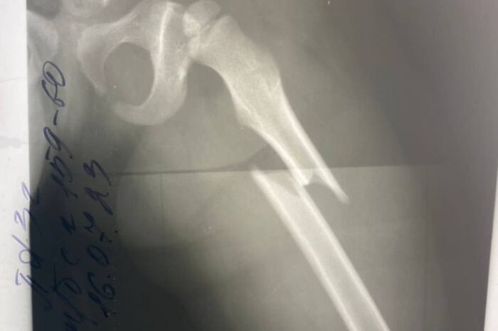 У маленькой девочки диагностировали закрытый перелом левого бедра со смещением отломков.