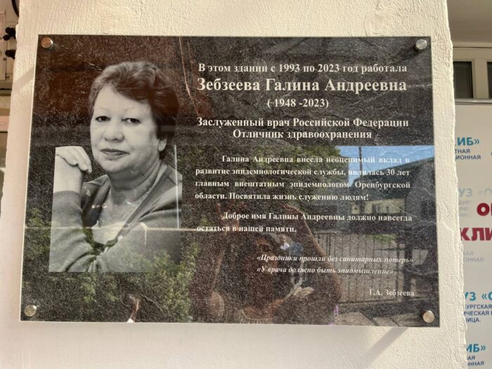 На здании областной инфекционной больницы появилась доска в память о главном эпидемиологе Оренбуржья Галине Зебзеевой.