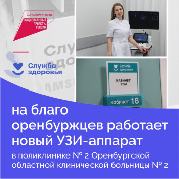 В 2022 году в Оренбургскую областную клиническую больницу № 2 благодаря региональному проекту «Модернизация первичного звена здравоохранения» (нацпроект «Здравоохранение») поступило новое современное оборудование — ультр