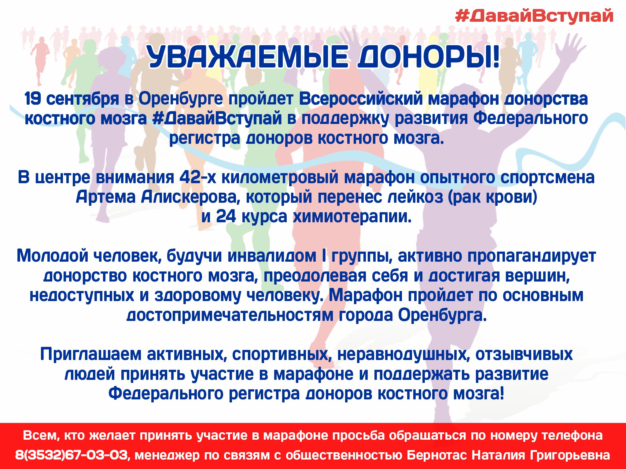 ВНИМАНИЕ! 19 СЕНТЯБРЯ ПРОЙДЕТ ЗАБЕГ ДОНОРОВ В ОРЕНБУРГЕ!