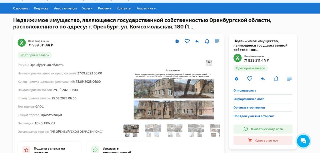 На сайте в качестве причины приватизации указывается распоряжение Минприроды Оренбургской области «О согласовании реализации имущества». Напомним, до 2022 года на данной территории находилось здание больницы ГАУЗ «Оренбургская областная клиническая инфекционная больница». После строительства нового госпиталя объекты, расположенные на рассматриваемом земельном участке, не функционируют.