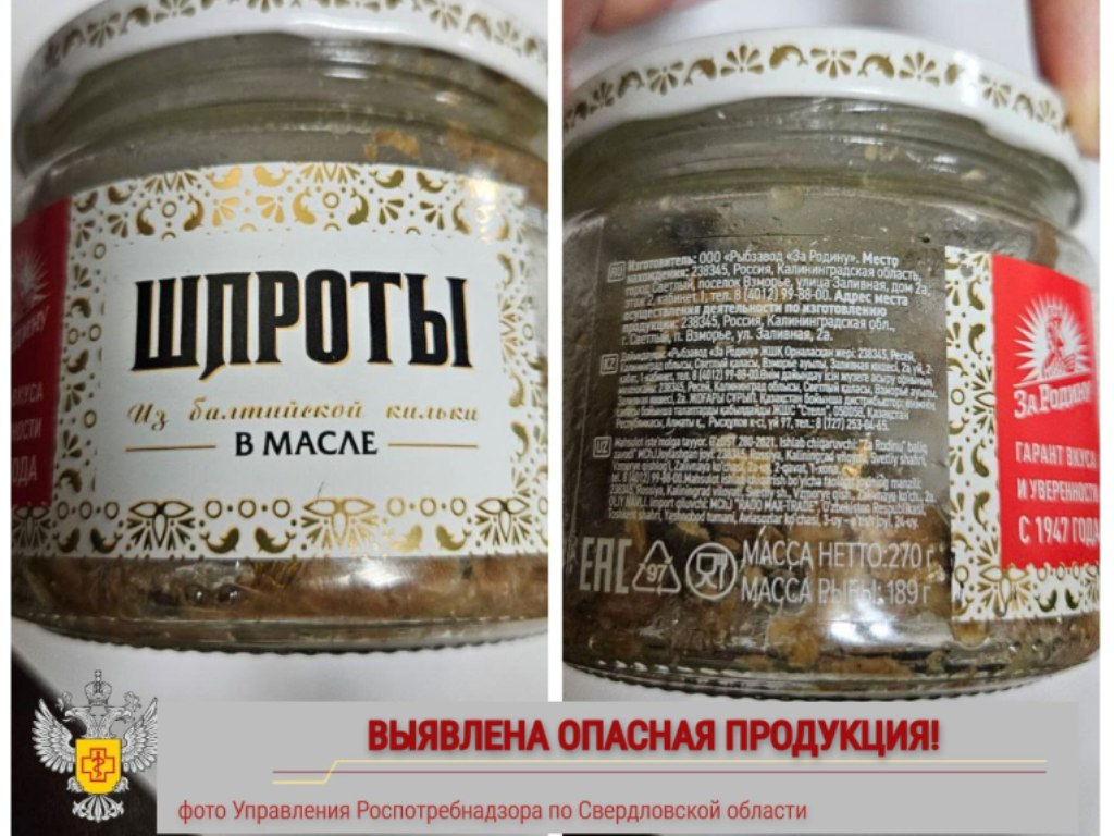 Случаи заболевания ботулизмом, предположительно, связанны с употреблением рыбных консервов «Шпроты в масле из балтийской кильки тушки» от производителя ООО Рыбзавод «За Родину». Дата изготовления — 13 сентября 2024 года, срок годности — четыре года. Место изготовления продукции — Калининградская область, город Светлый, поселок Взморье, улица Заливная, дом 2А, кабинет 1.